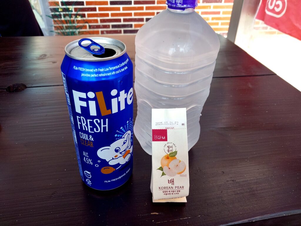オルムを降りた後は梨のゼリーとビールでお昼ごはん。コース付近にコンビニがたくさんあるというのは有難い。