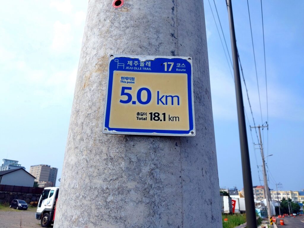 オルレは島を挙げての観光プロジェクトなので、コースの随所に距離を表す標識が設けられています。