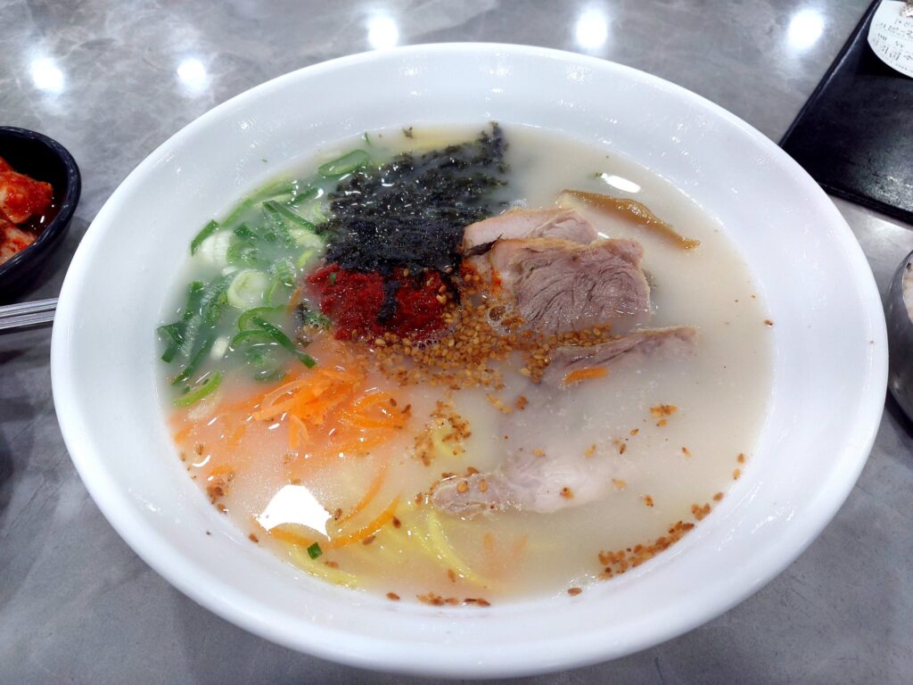 ゴール地点から近かったということもあり、済州島グルメの一つであるコギグクスを食べてから帰ります。