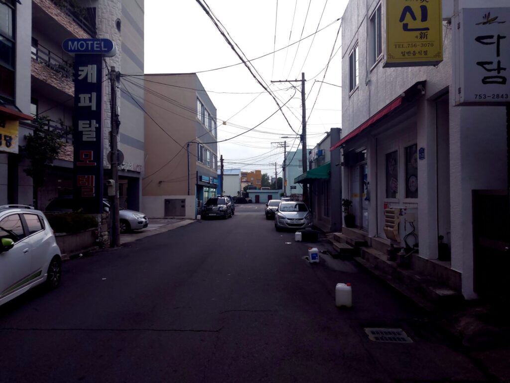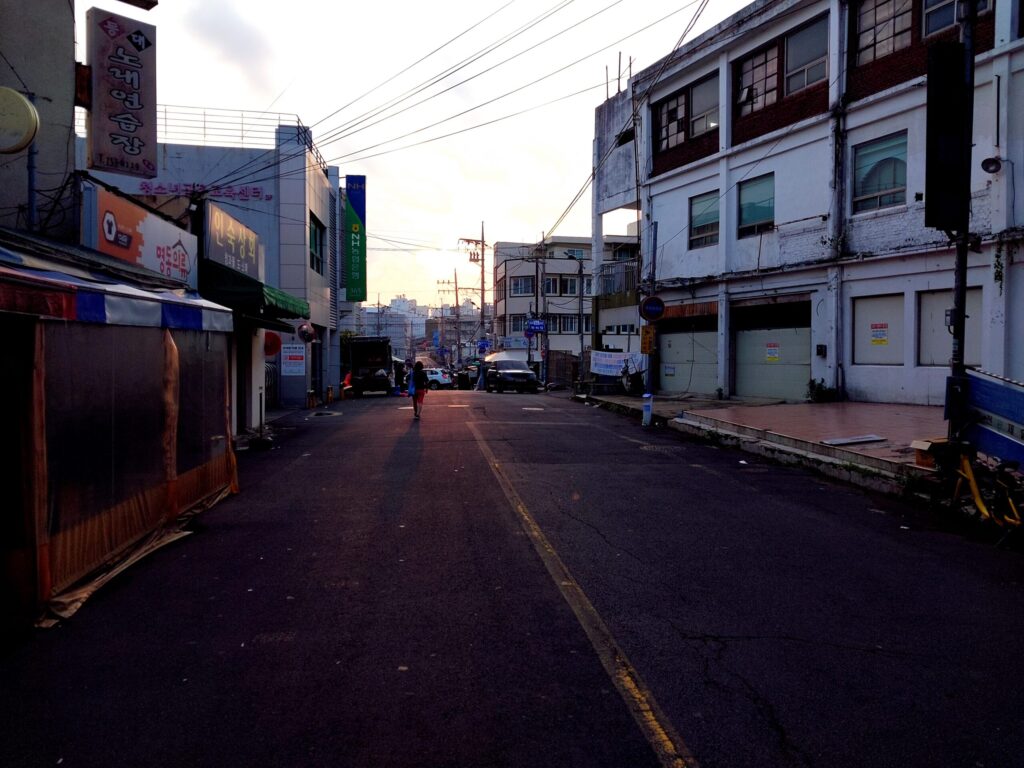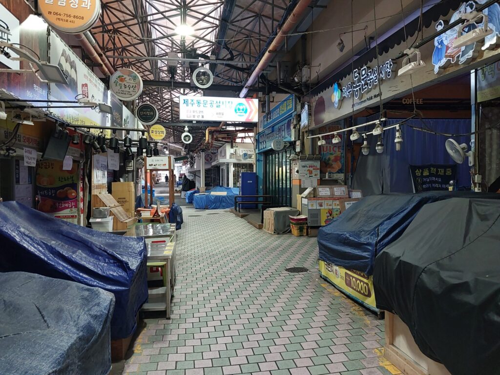 オルレのコースには市場の中も含まれているけど、この時間はまだどの店も開店準備すらしていない。