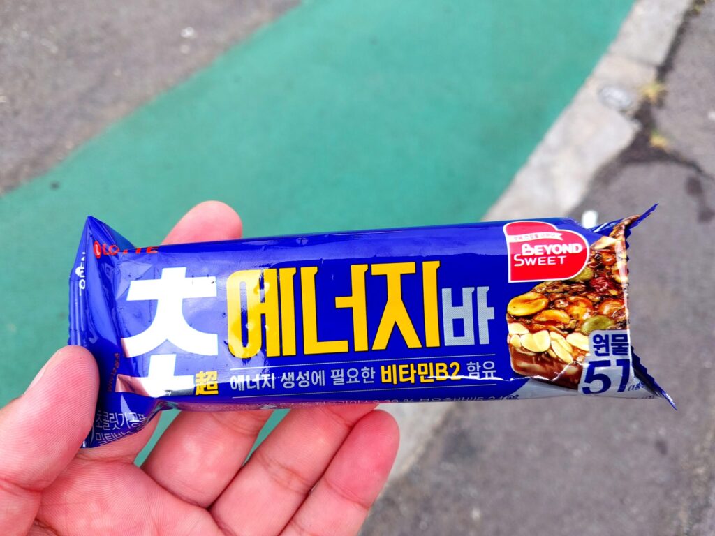 コンビニで買ったプロテインバーで朝ご飯。